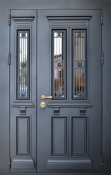 Полуторная порошковая входная дверь с большим остеклением